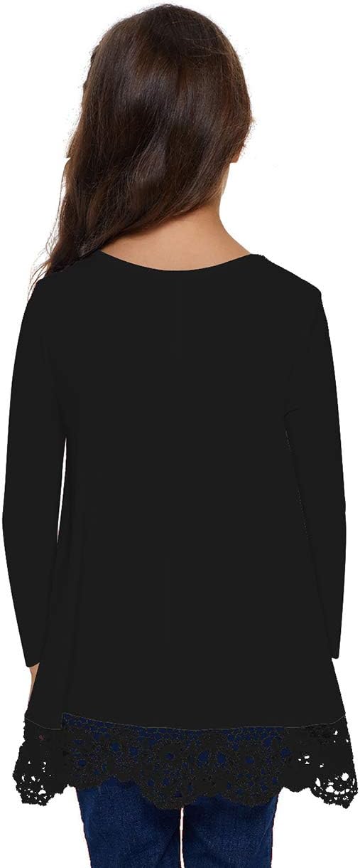 storeofbaby Girls Casual Long Sleeve Shirts Loose Fit Tops Lace Hem Tunic Blouses for 4-13 Years