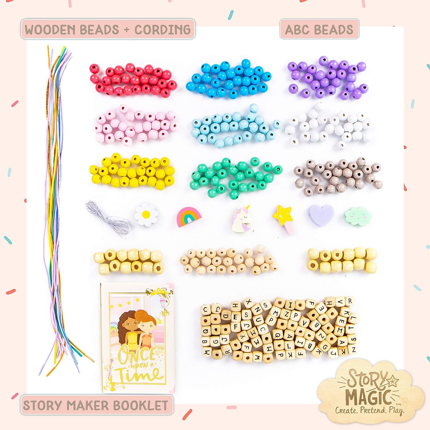 Story Magic Wooden ABC Bead Kit, Premium Wood Jewelry Making Kit, 350+ Wooden Beads & Charms for Beading Bracelets, Great for Playdates & Sleepovers, Arts & Crafts Kit Set for Kids