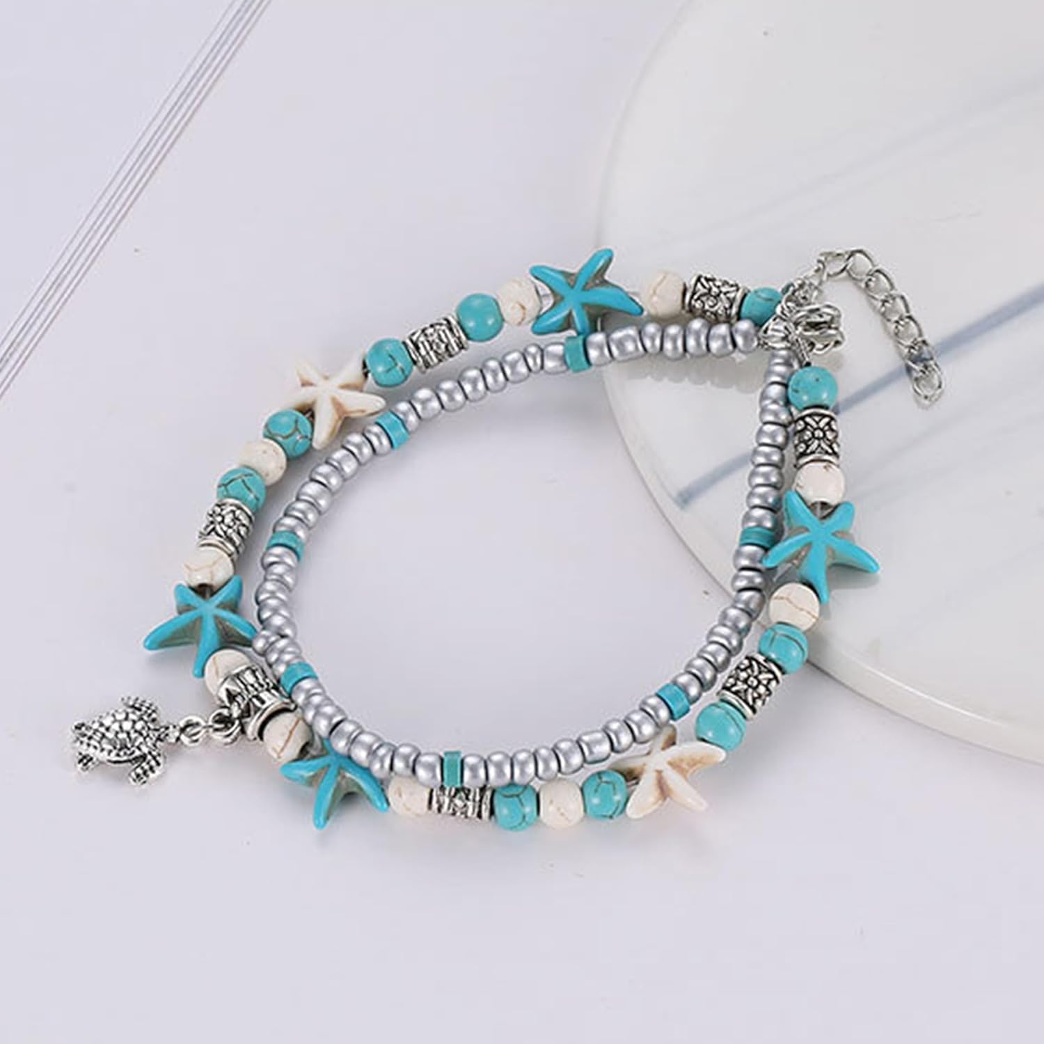 Summer Beach Ankle Bracelets for Women Girls Animal Tracking Bracelet Anklet Turtle Starfish Seashell Elephant Ankle Bracelets Beach Jewelry Gift for Teen Girls