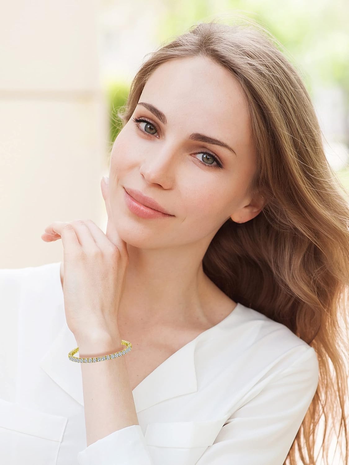 Tennis Bracelet for Women 14K Gold Plated 4mm Cubic Zirconia Classic Tennis Bracelet Gold Link Chain Bracelet Jewelry Gift for Girls(Length 7.48Inch)