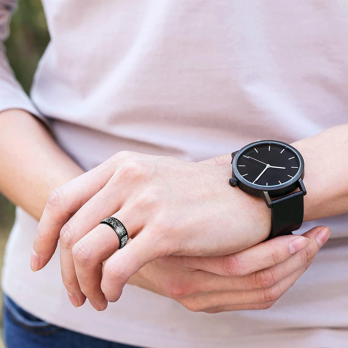 Product feature: 1.Style: 8mm stainless steel band Arabic Shahada Rings for Men or Women.