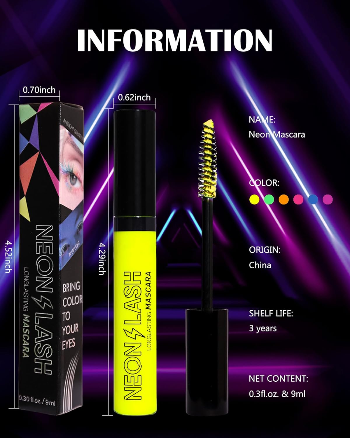 Be the first to review “UV Glow Colored Mascara Volume And Length-6Pcs Green Yellow Orange Pink Blue Purple Neon Mascara, Waterproof Smudgeproof Long Lasting Non Clumping Mascara, Fluorescent Glow in Dark Party Supplies-Set”