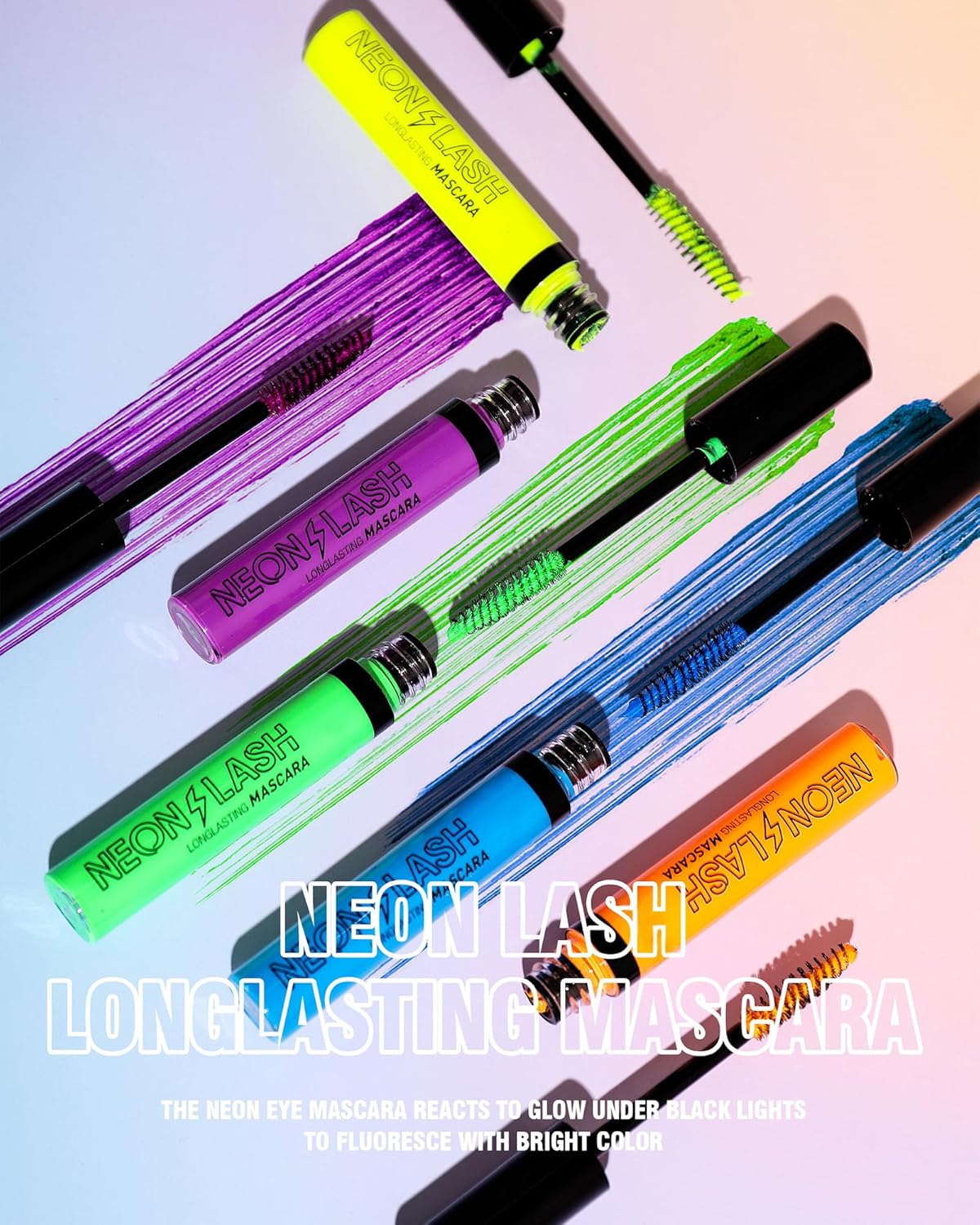 6 Color Set Colored Mascara Neon Mascara-Yellow Green Orange Pink Blue Purple Waterproof Smudge-proof Long Lasting UV Glow Mascara, Colorful Fluorescent Mascara, Fast Dry Eyelash Defining, Great for Cat-Eye Effect, Great for Nights Out, Halloween Parties Stage Holiday Birthday Use, Woman and Girl Gift