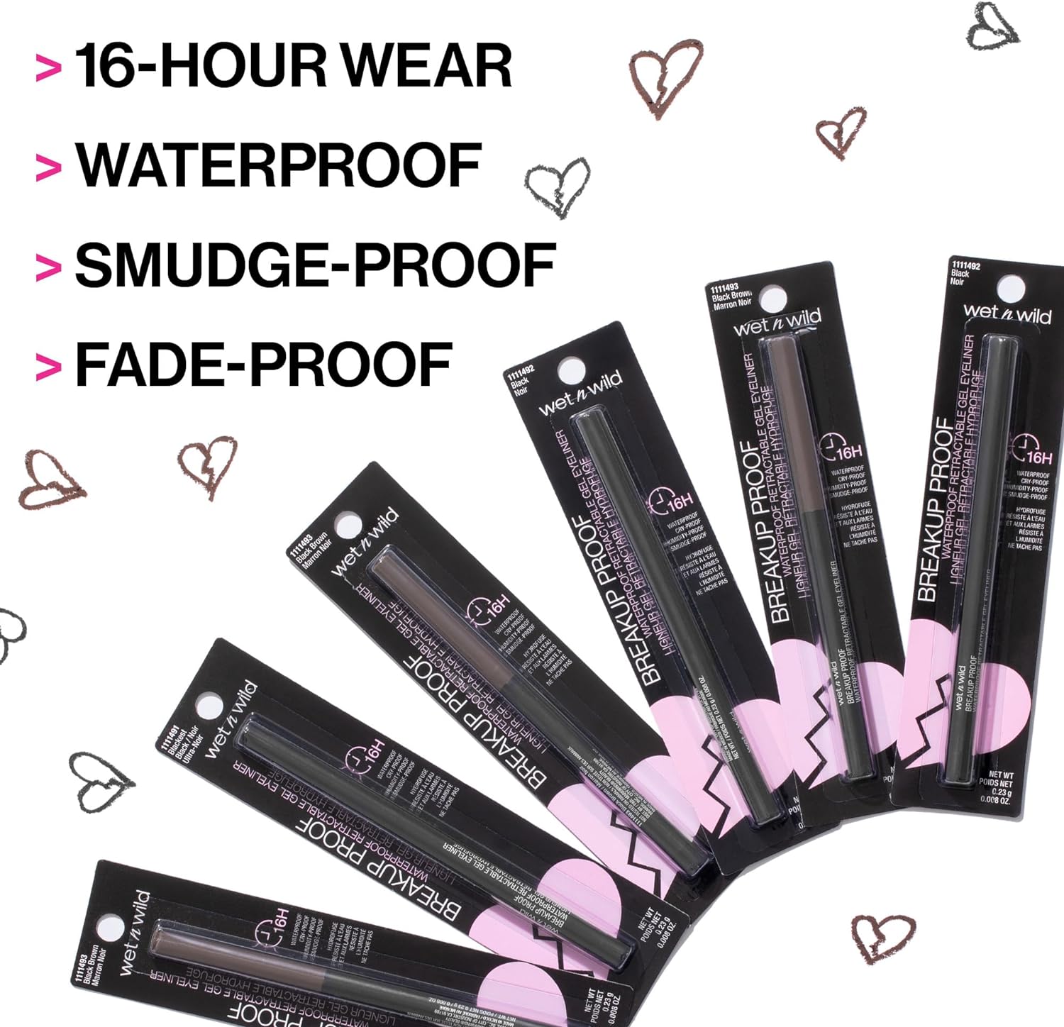 Waterproof Eyeliner: This ultra pigmented eyeliner delivers smudge proof, flake proof, cry proof color with a satin gel formula that glides onto lids without tugging or pulling. Lasts up to 16 hours